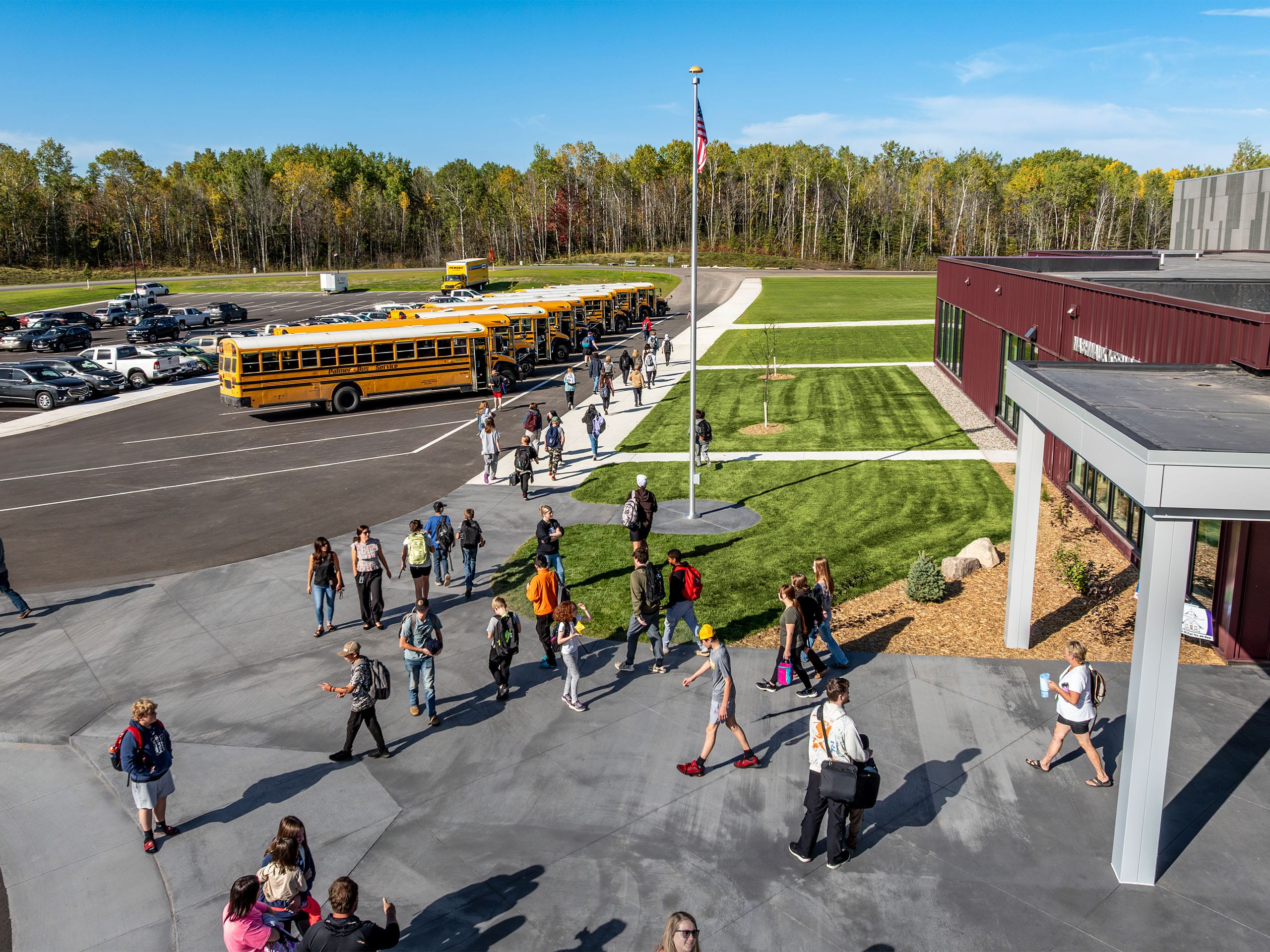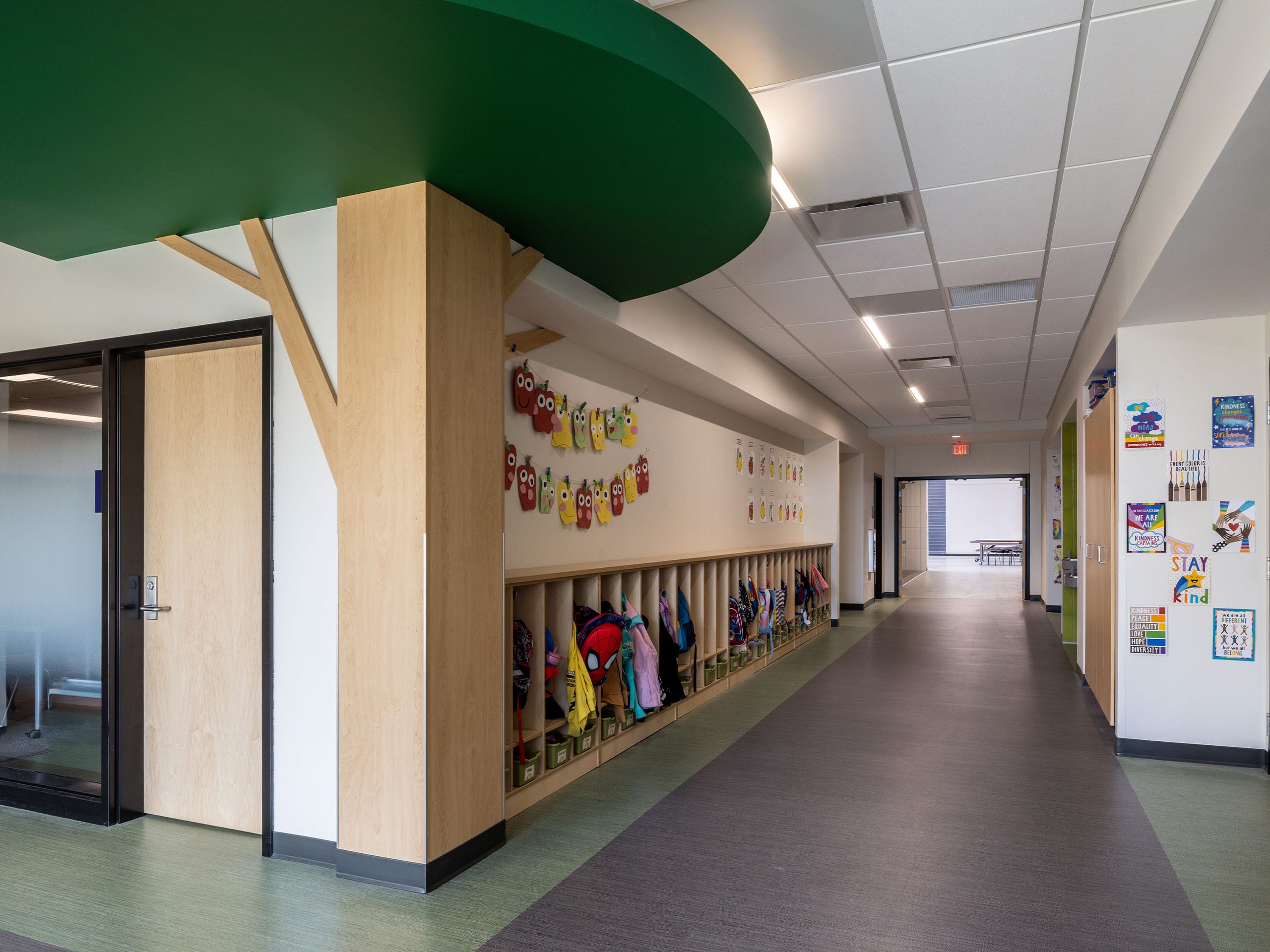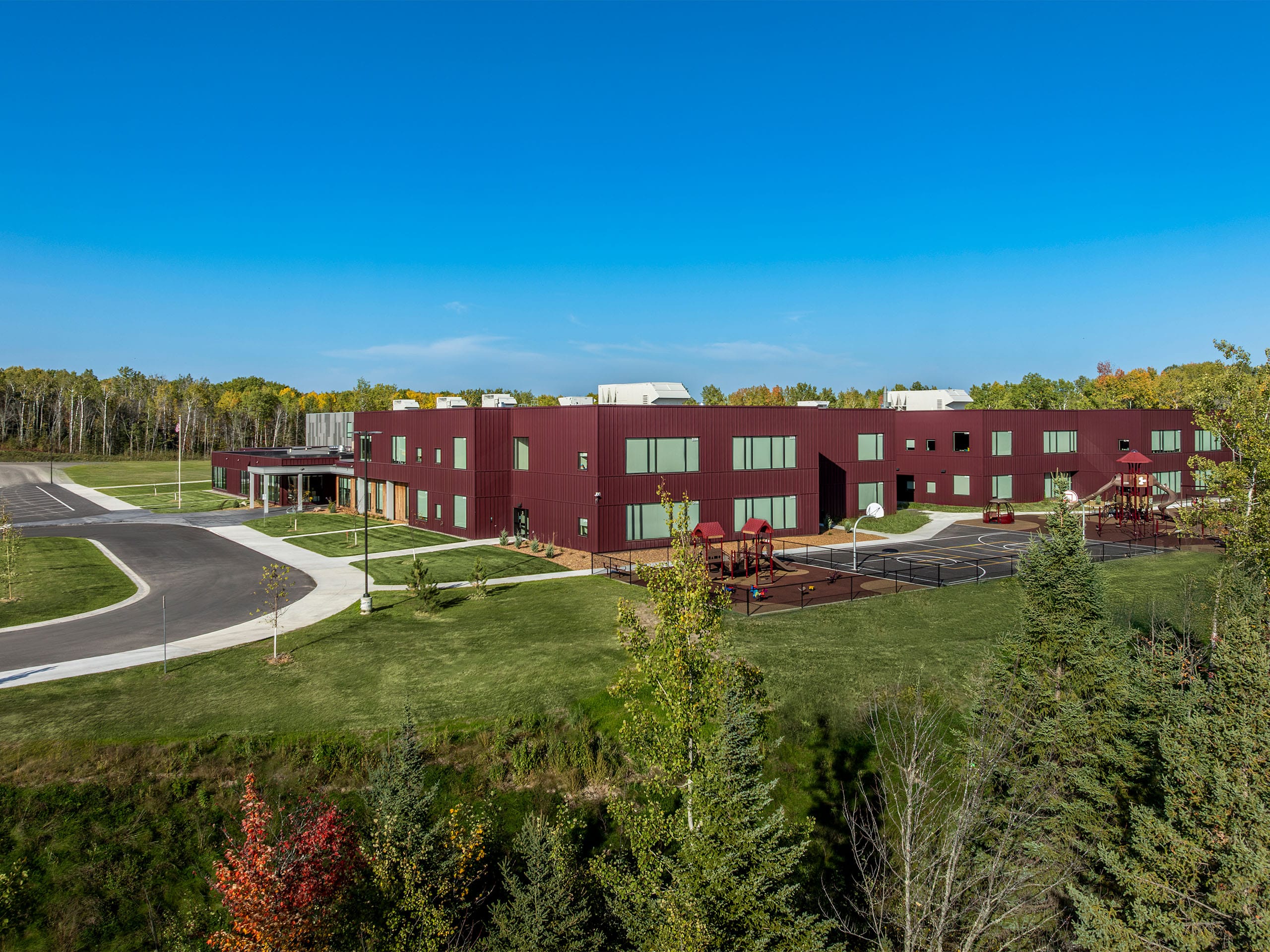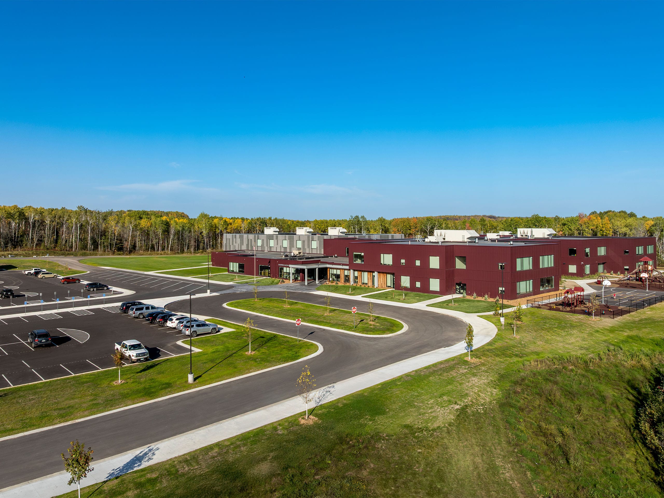 Other features of the new school include a secured, easily-monitored entry space that regulates access to both school and community spaces, a full kitchen and cafeteria, media and technology workspace, office space for the district, dedicated green space for outdoor learning, large windows to maximize natural daylight, and a separate pickup/drop-off lanes for buses and cars.