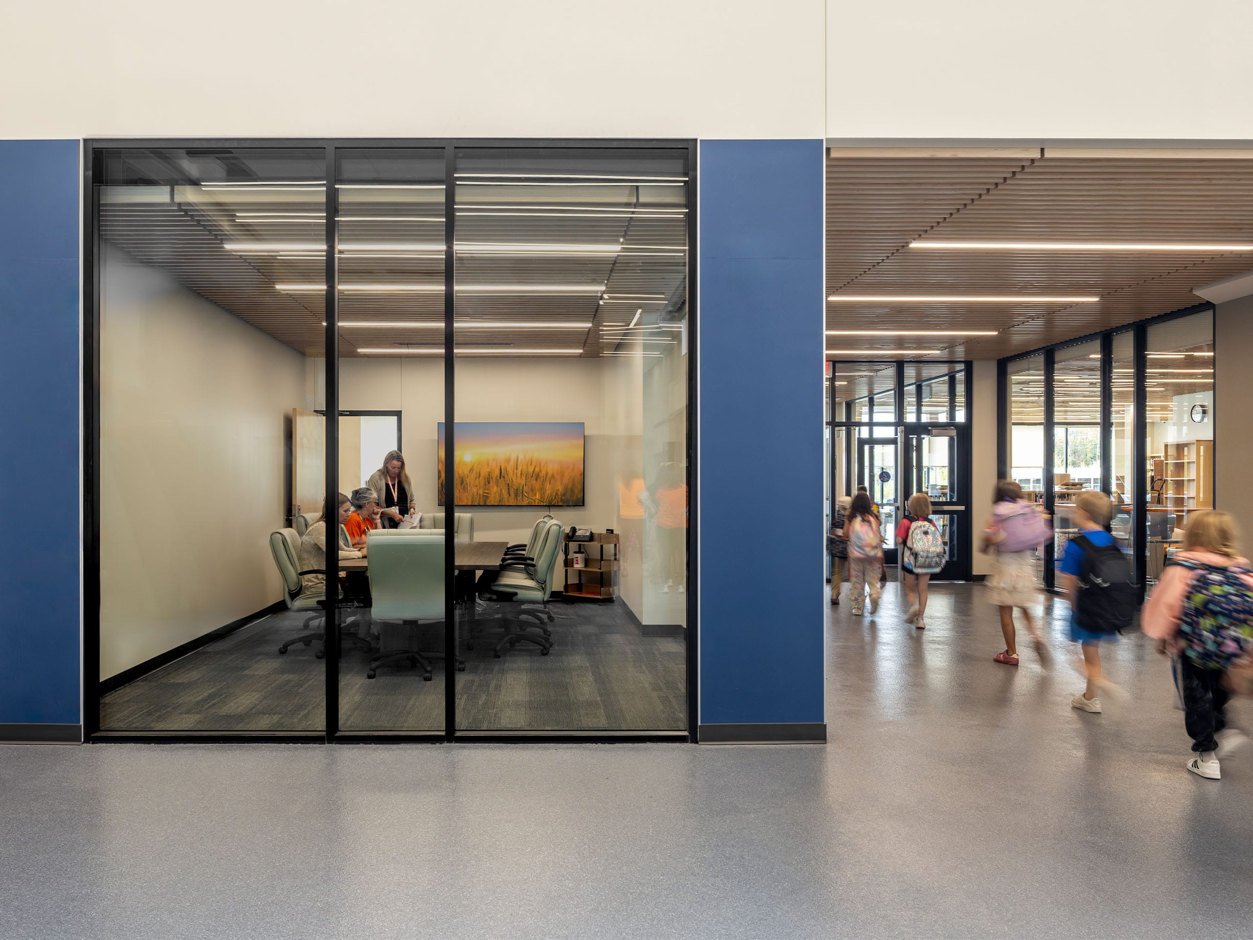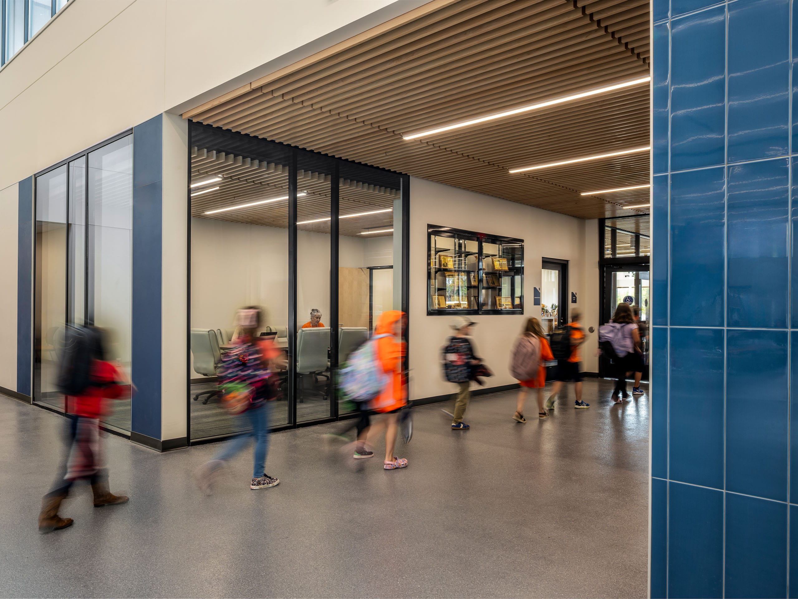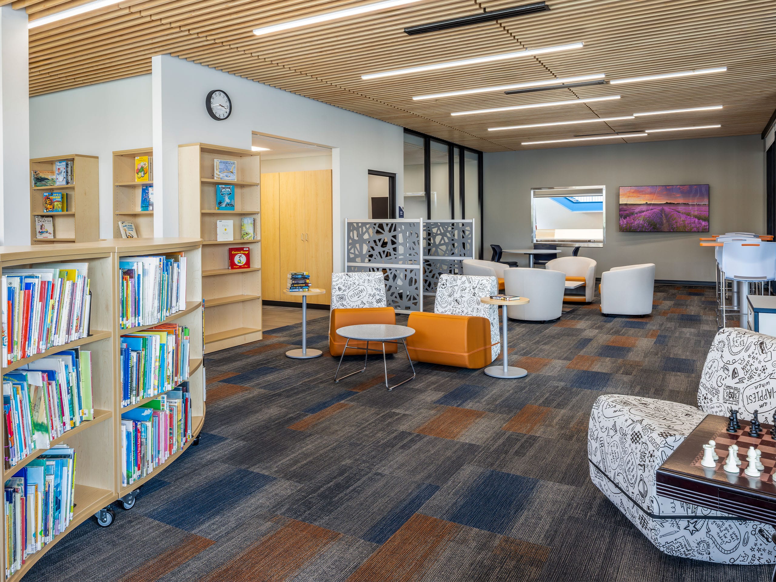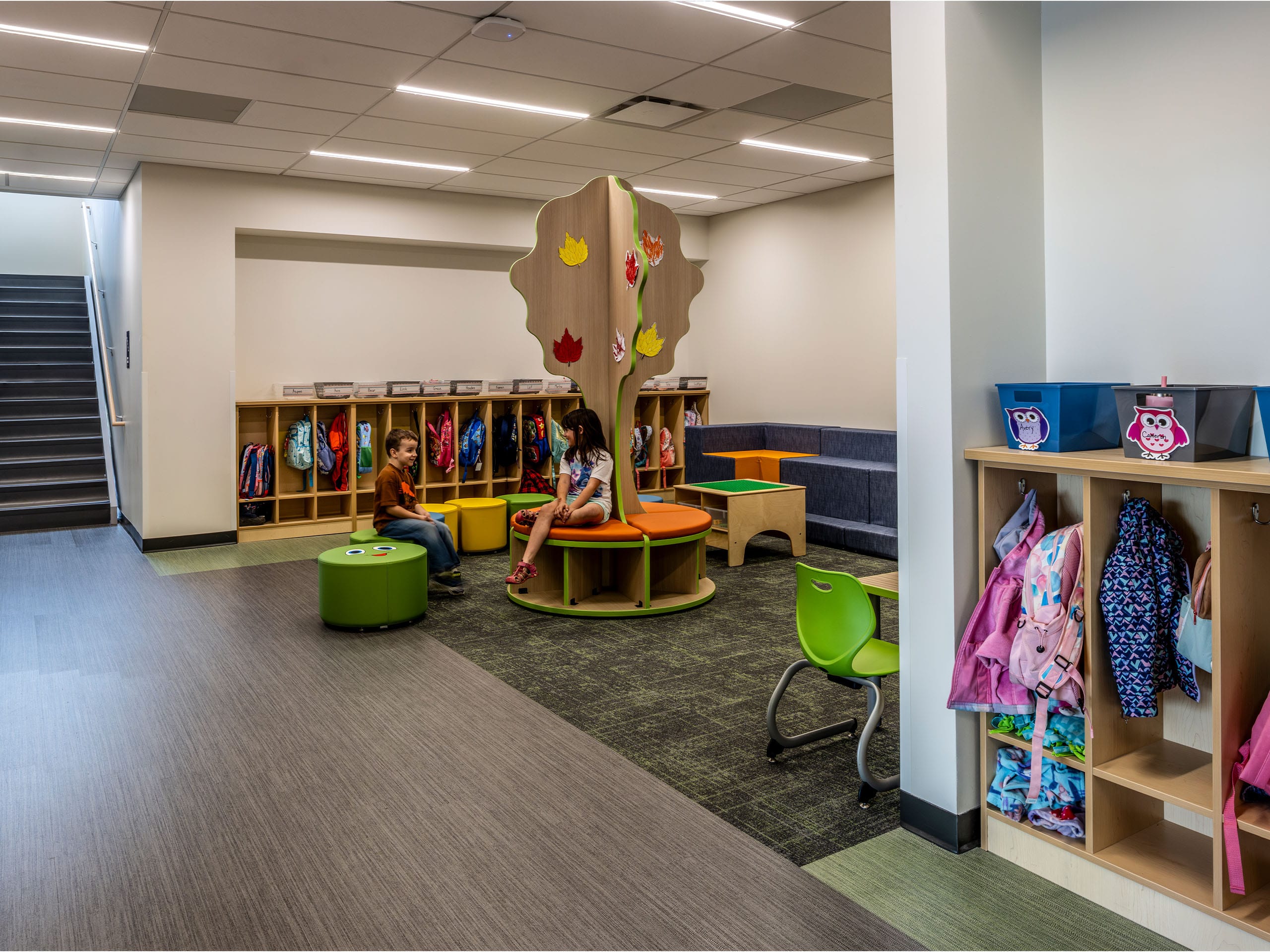 Other features of the new school include a secured, easily-monitored entry space that regulates access to both school and community spaces, a full kitchen and cafeteria, media and technology workspace, office space for the district, dedicated green space for outdoor learning, large windows to maximize natural daylight, and a separate pickup/drop-off lanes for buses and cars.