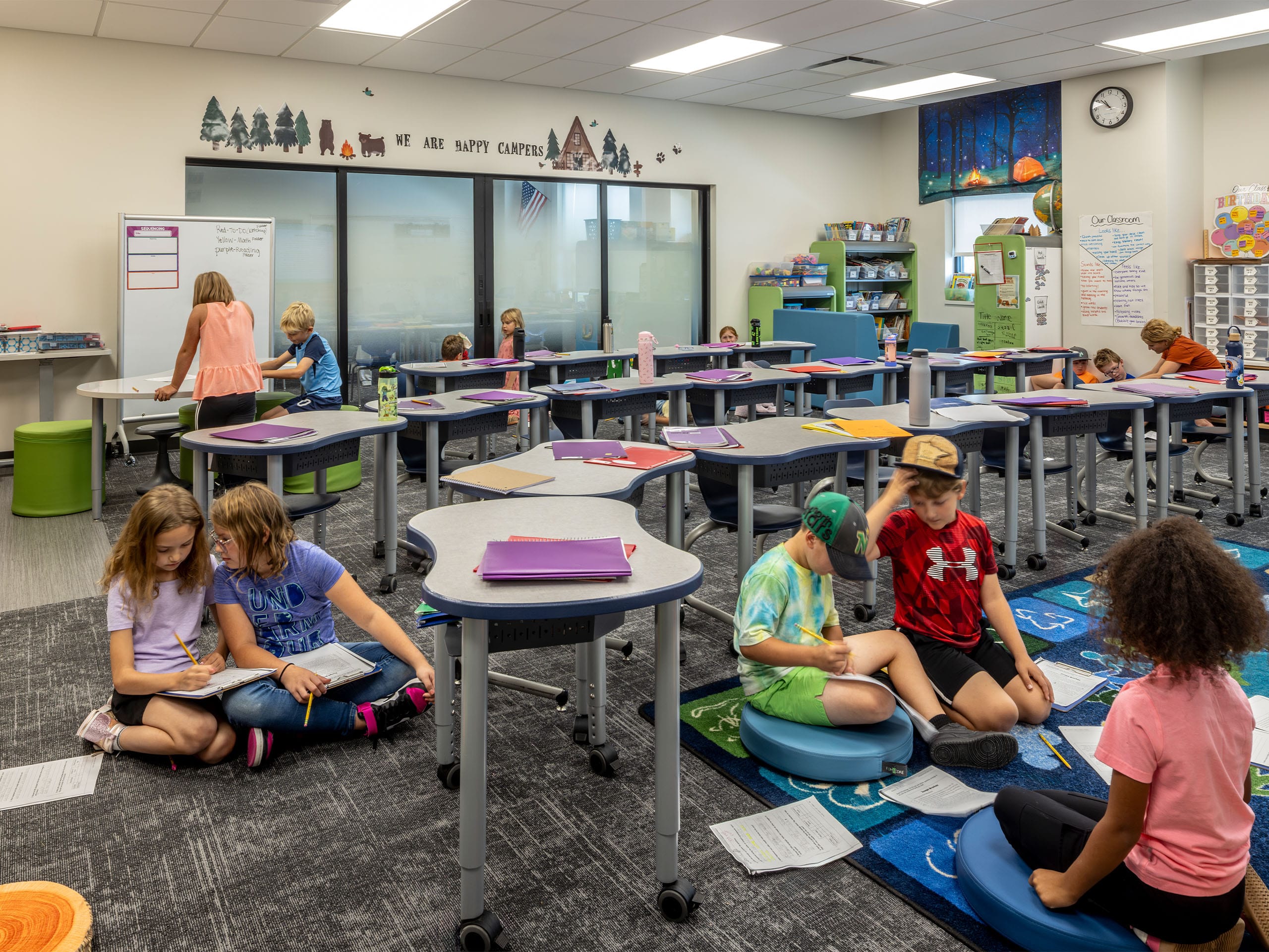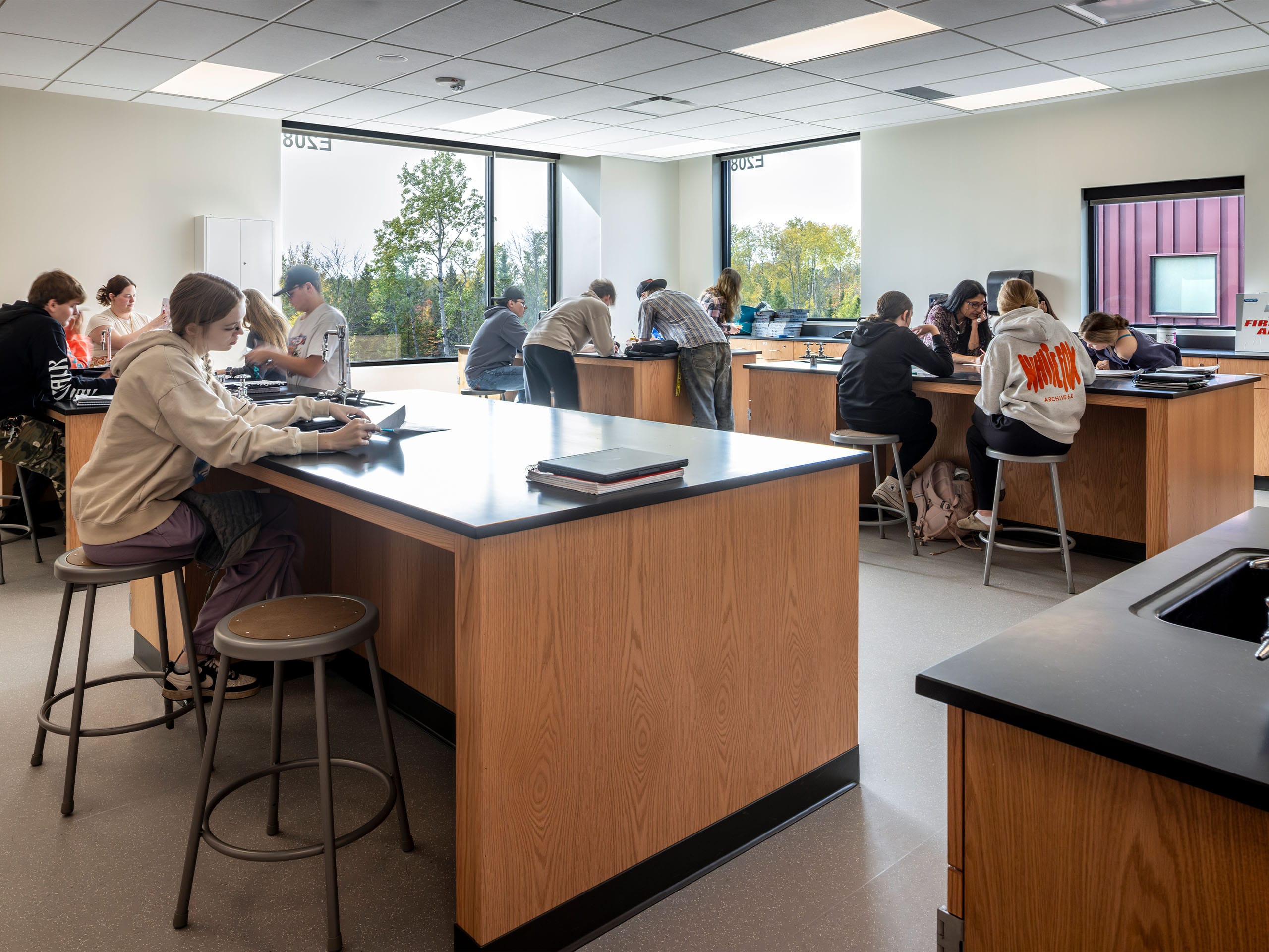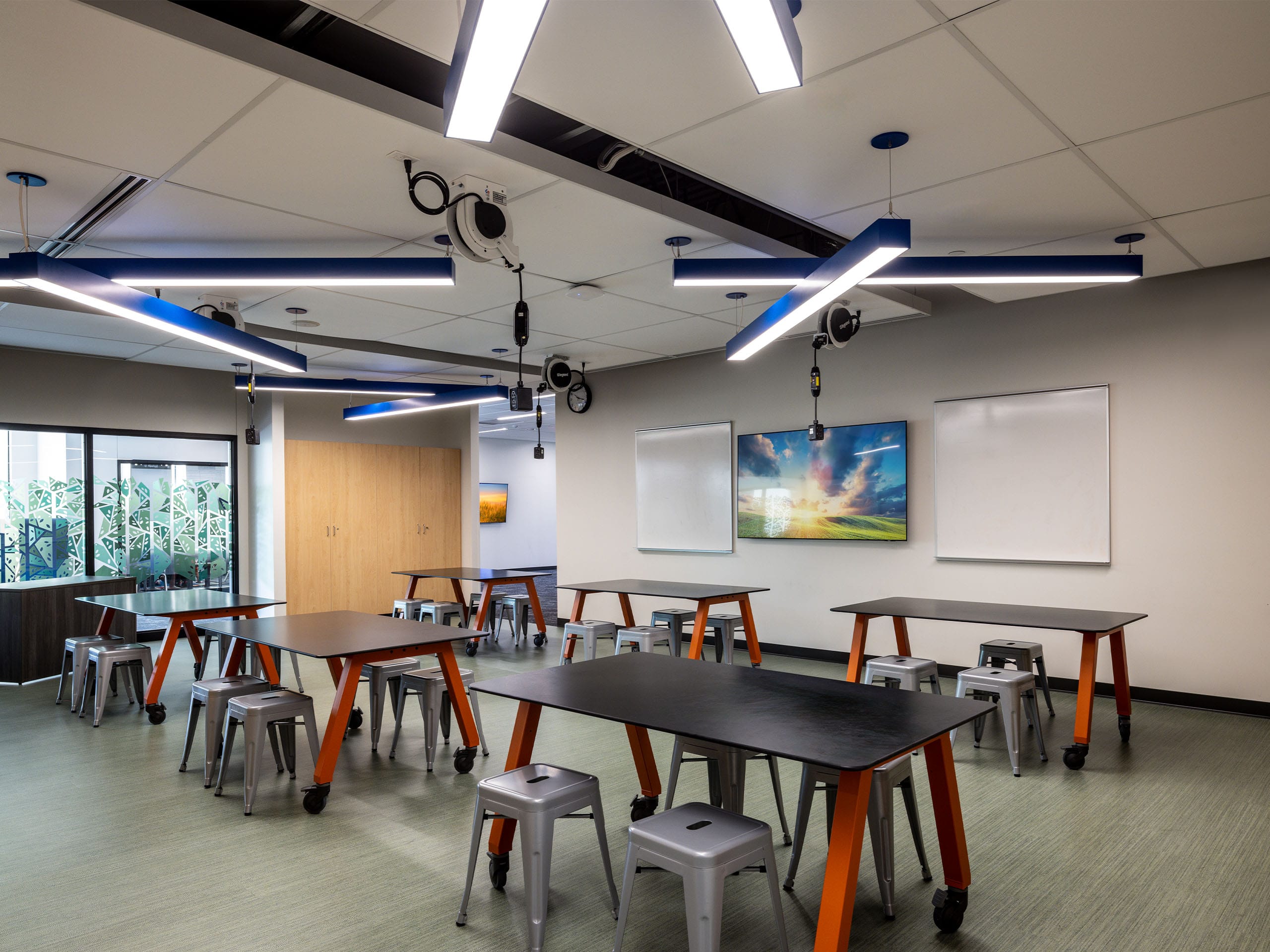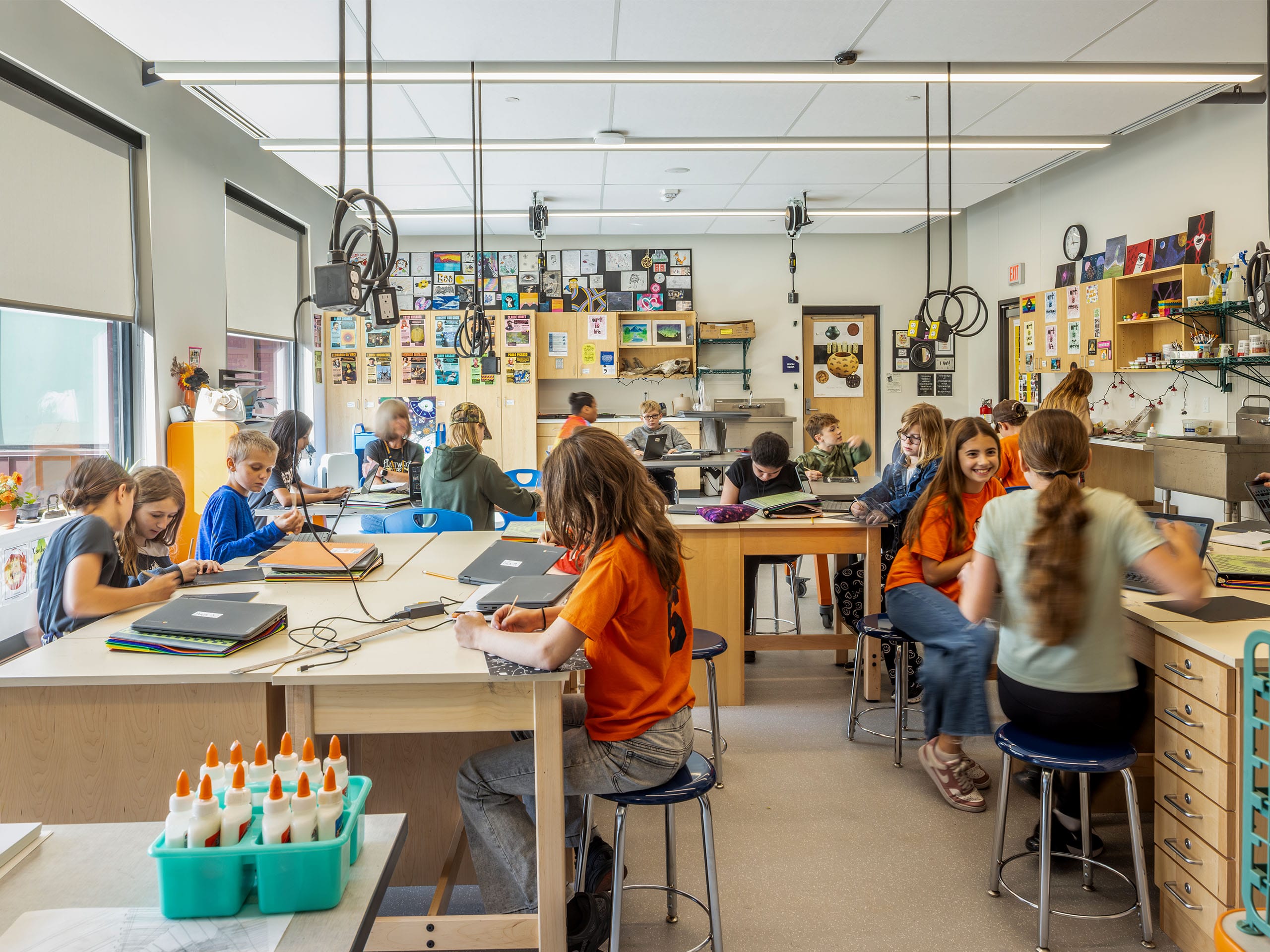 Other features of the new school include a secured, easily-monitored entry space that regulates access to both school and community spaces, a full kitchen and cafeteria, media and technology workspace, office space for the district, dedicated green space for outdoor learning, large windows to maximize natural daylight, and a separate pickup/drop-off lanes for buses and cars.