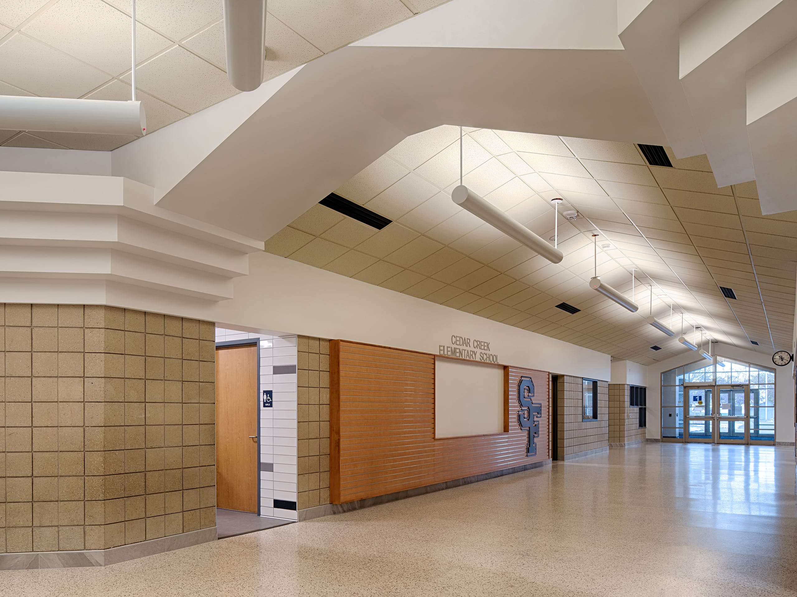 - Cedar Creek Elementary School: Various renovations were made to this facility, including a transformed entrance and administrative spaces; a new STEM/exploratory lab to enhance hands-on learning; a redesigned media center; improved instructional spaces; a dedicated Kids Connection space; and improved areas to support Special Education and center-based programs.