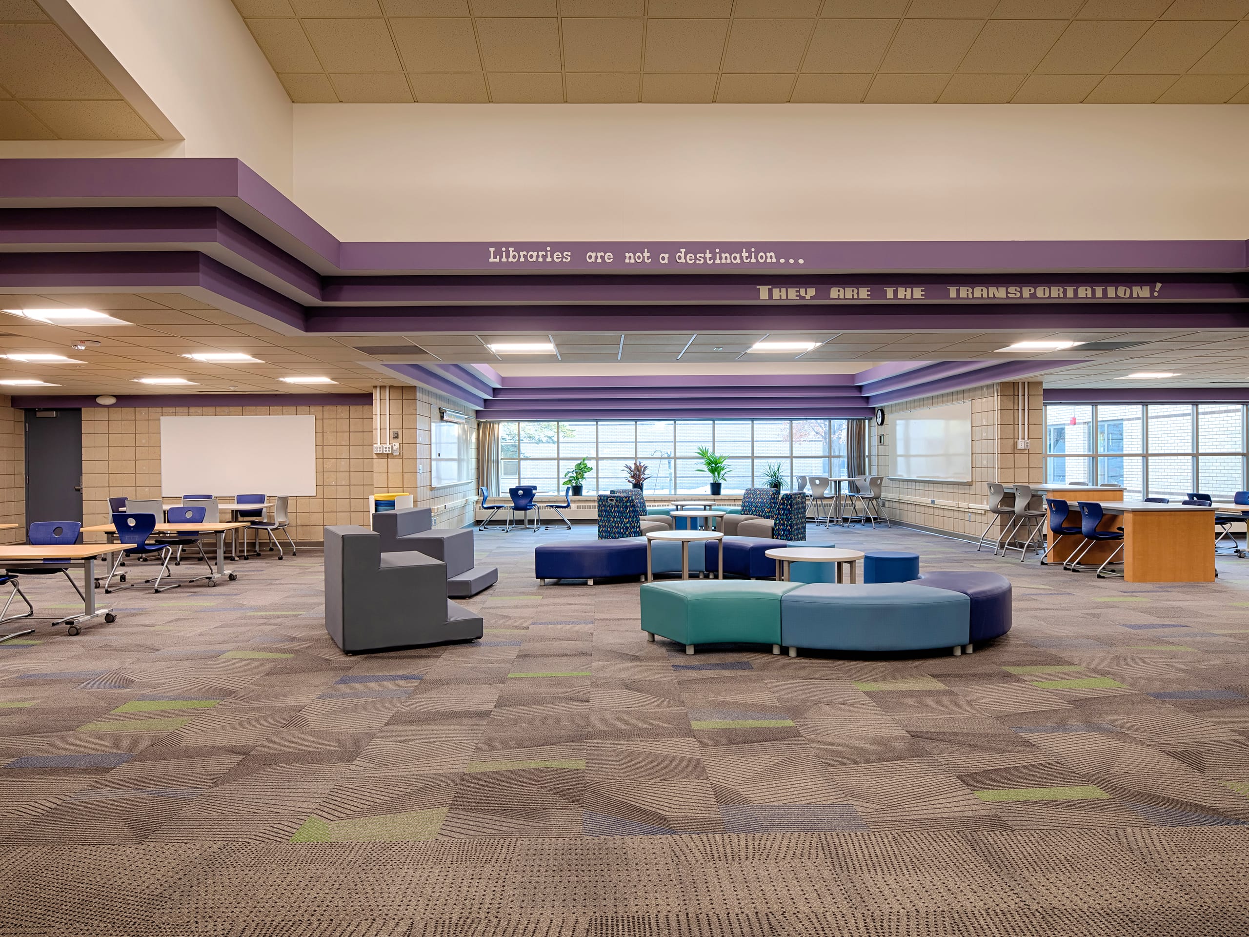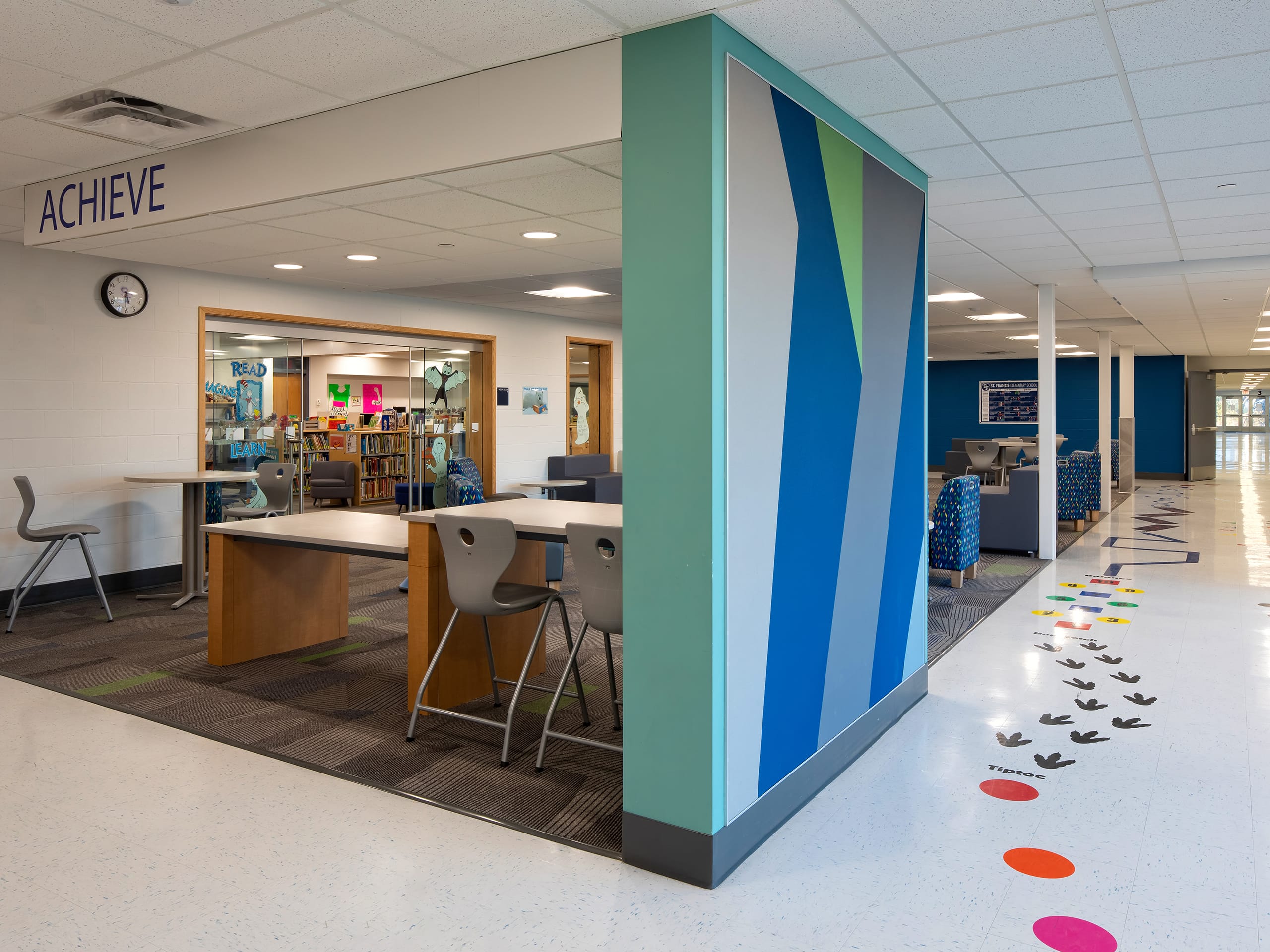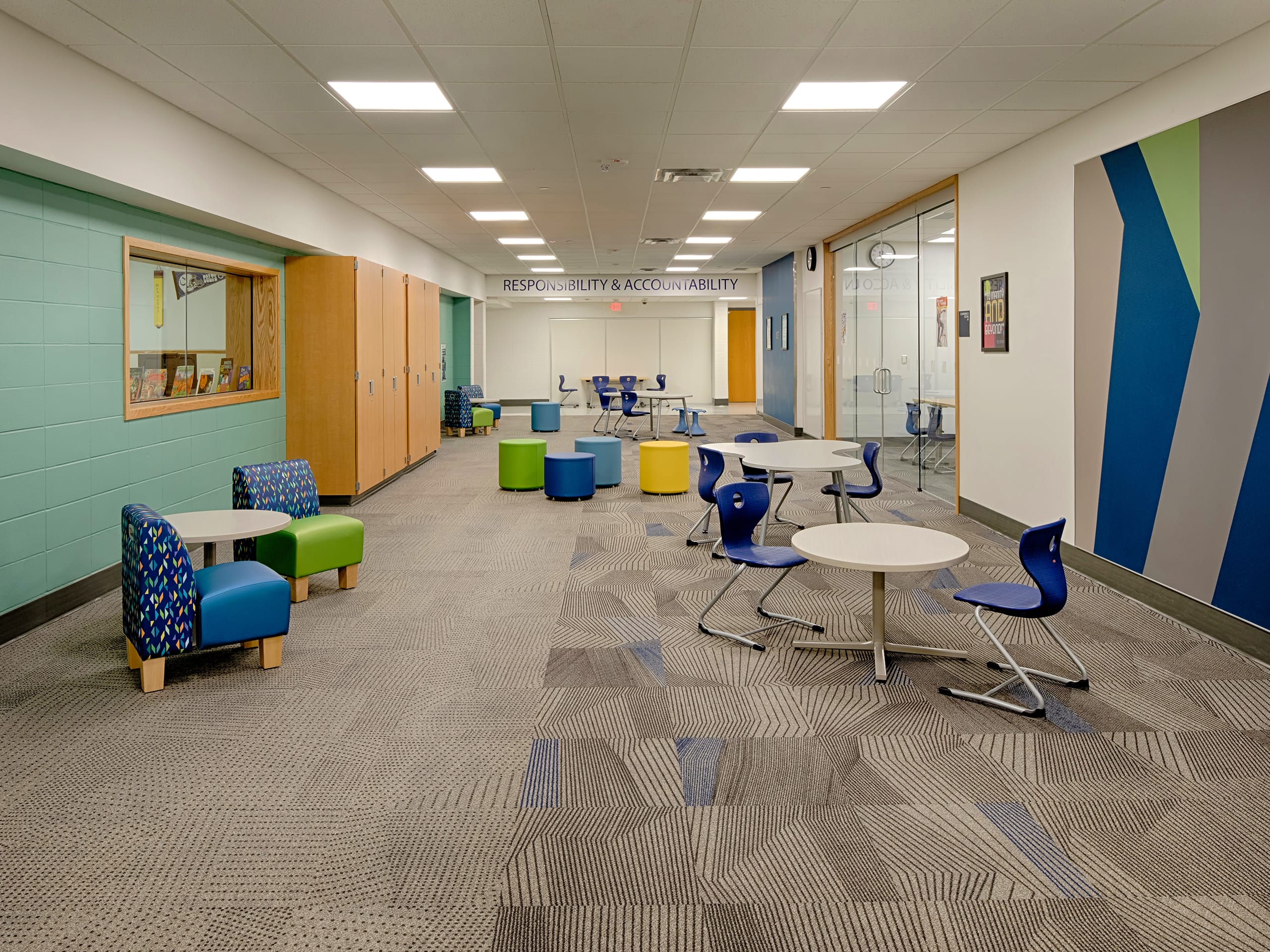 - East Bethel Elementary School: New classroom pods were added along with adjacent breakout spaces to support collaborative learning and flexibility. Additional improvements include enhanced visibility, increased natural daylight, modern finishes, a redesigned media center, an improved main office and secured entrance, upgraded mechanical and electrical systems, built‑in classroom storage, operable walls in tech suites, centralized staff amenities, and site changes to improve traffic flow and safety.