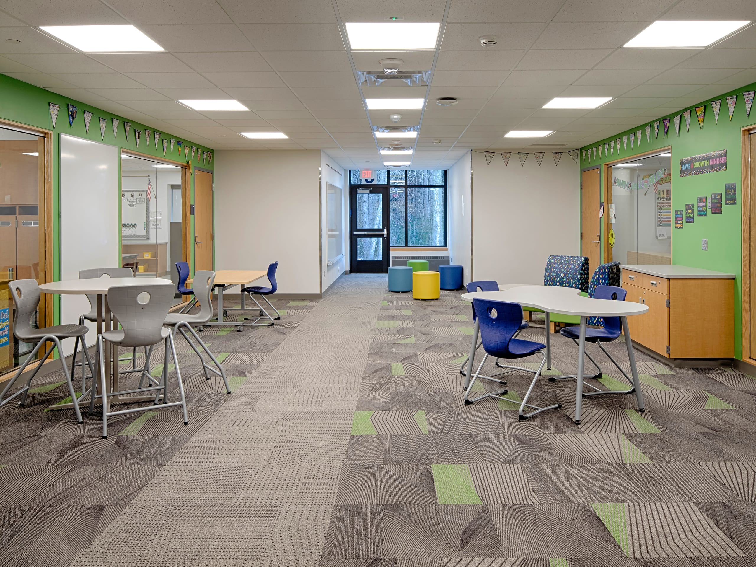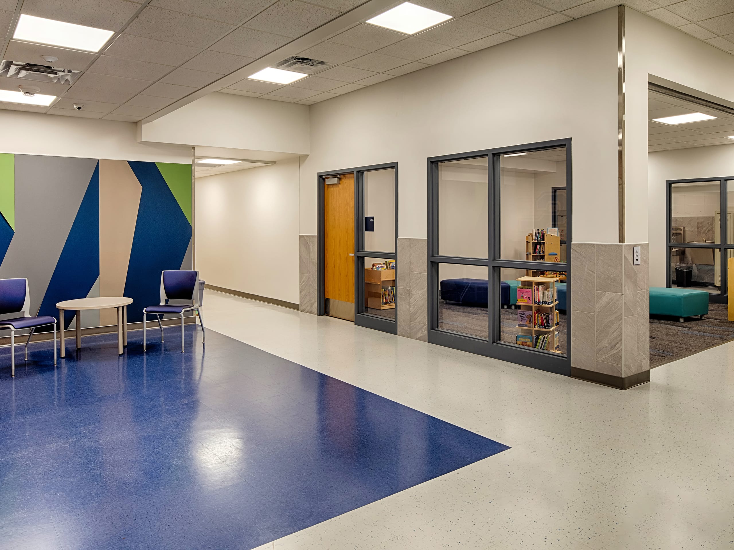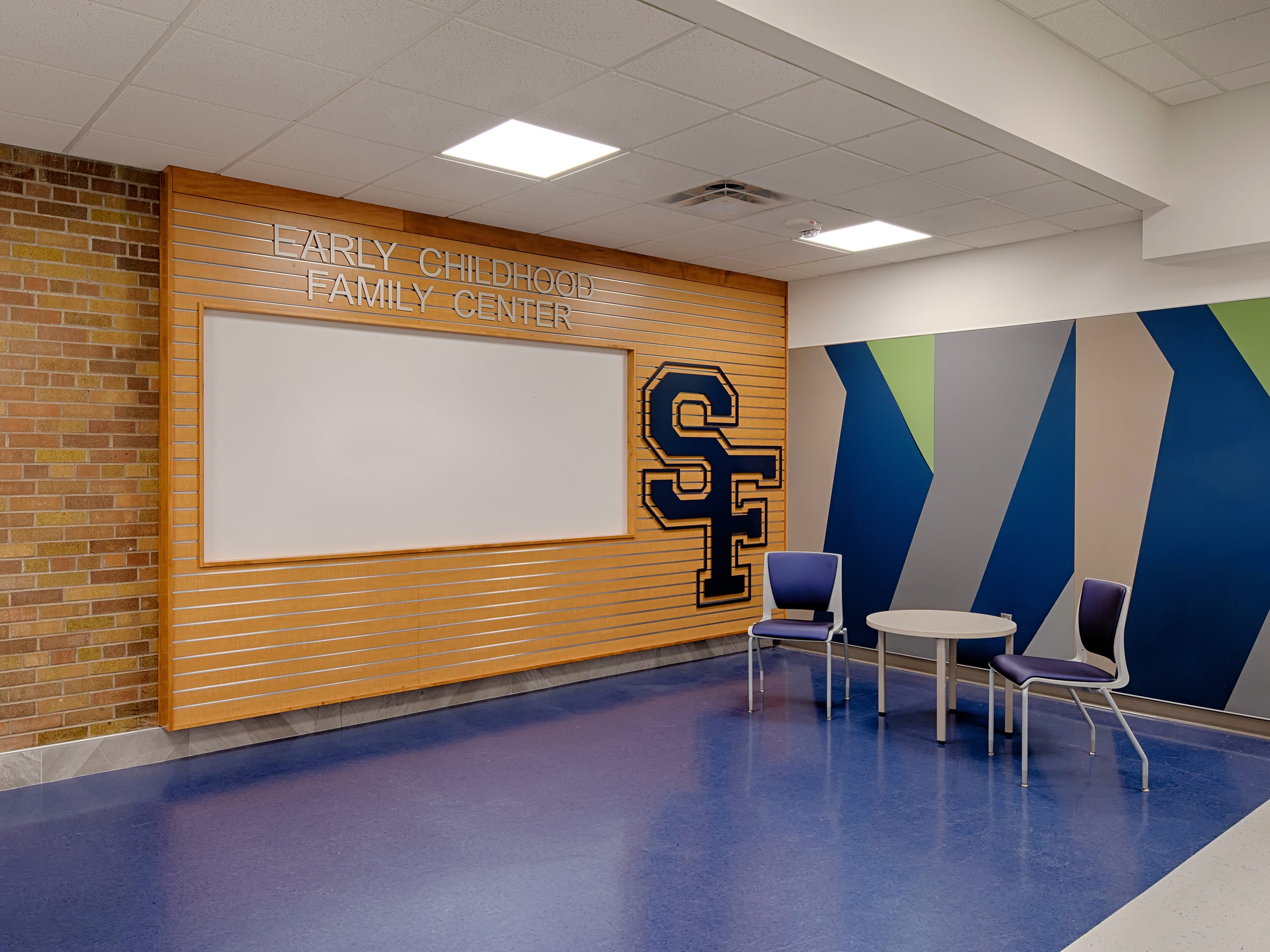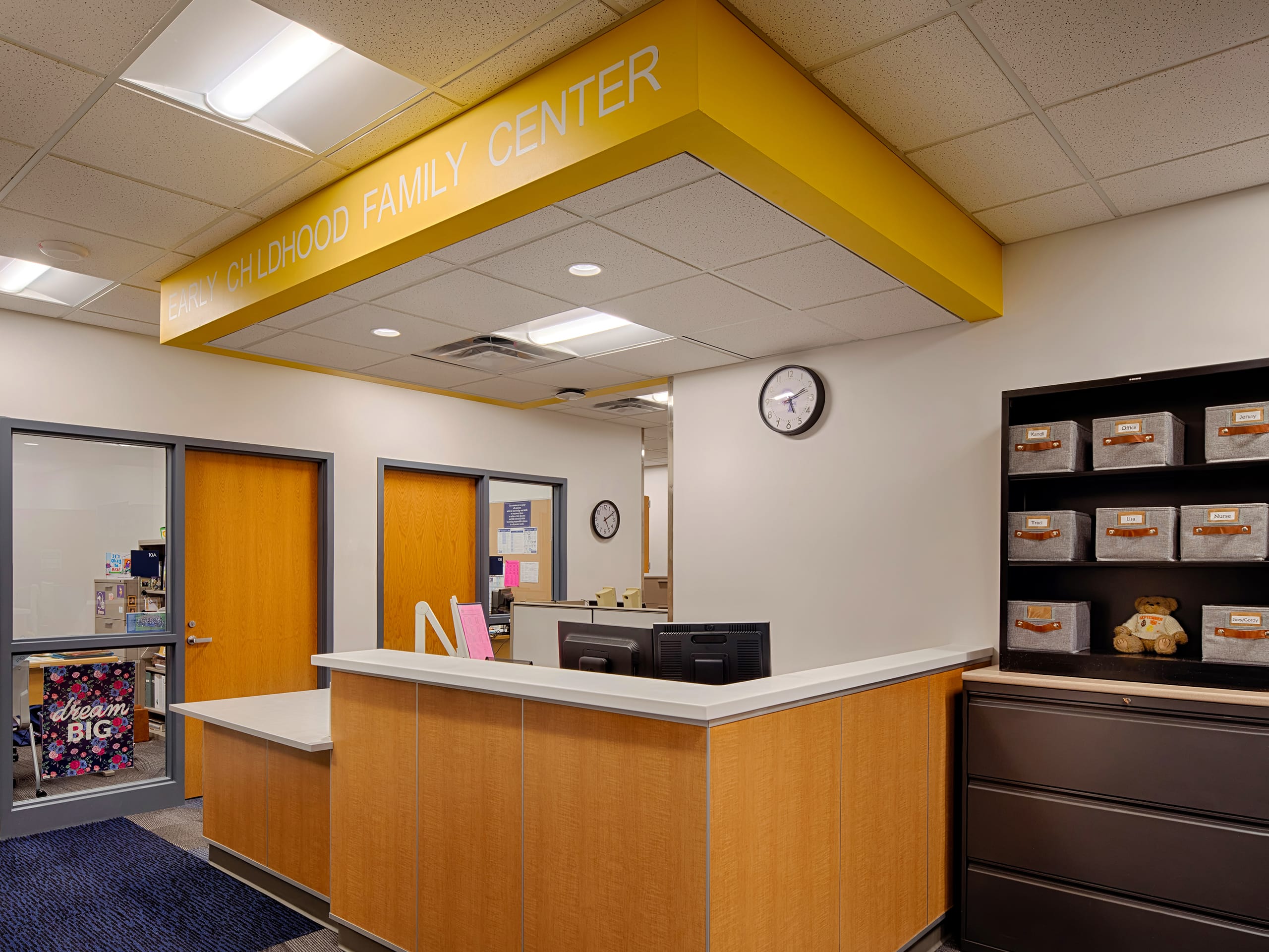 - Early Childhood Family Center: Improvements include a dedicated, secure entrance; enhanced administrative space; new finishes; updated restrooms; a dedicated Kids Connection space; and relocation of the staff lounge. In addition, two portable classrooms were removed, and the programming was integrated into the building.