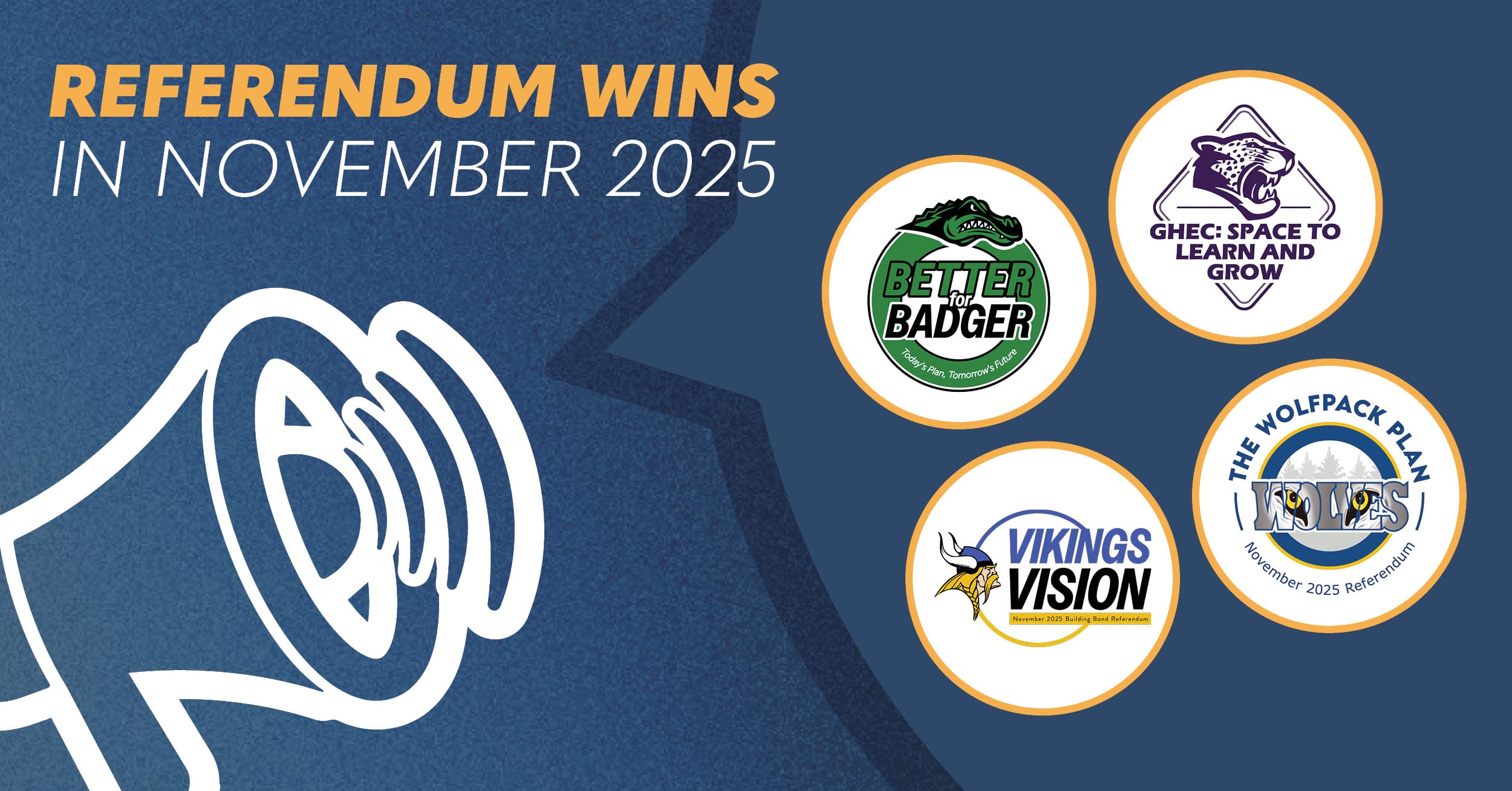 Our team celebrated the success of five building bond referendum questions and two operating levy questions that evening – Badger Community School’s building bond and operating levy approval, Cook County School District’s building bond, GHEC Public Schools’ building bond and operating levy approval, and Walker Hackensack Akeley Public Schools’ two-question building bond referendum. Explore the details of each project below.